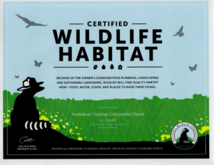 Green Sanctuary is a program of the Unitarian Universalist Association.  This program is an ambitious environmental and climate justice movement that seeks to live fully our principles and achieve our vision of a sustainable and just world for all.  In February 2020, Northshore Unitarian Universalist Church received its certification as a Green Sanctuary Congregation.